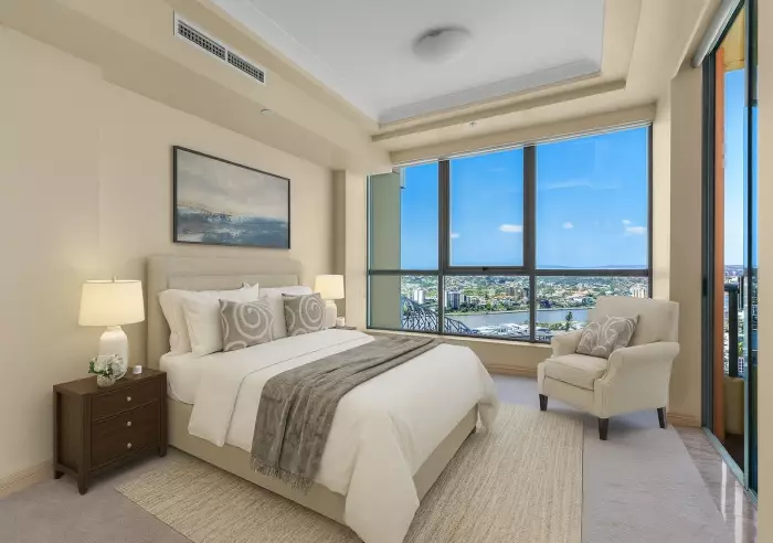 Positioned high above the Brisbane River, this rare sub-penthouse offers an exceptional lifestyle of luxury, space, and uninterrupted views. With expansive interiors, resort-style amenities, and direct access to the riverfront boardwalk, this residence is designed for those who appreciate exclusivity and convenience.